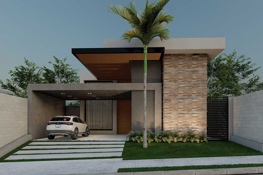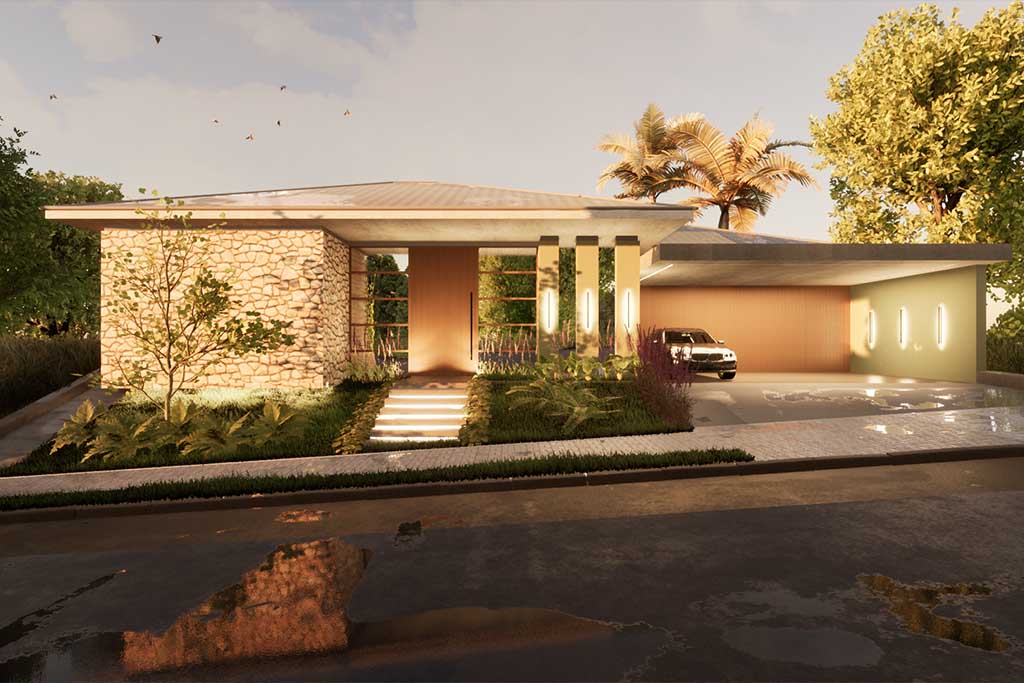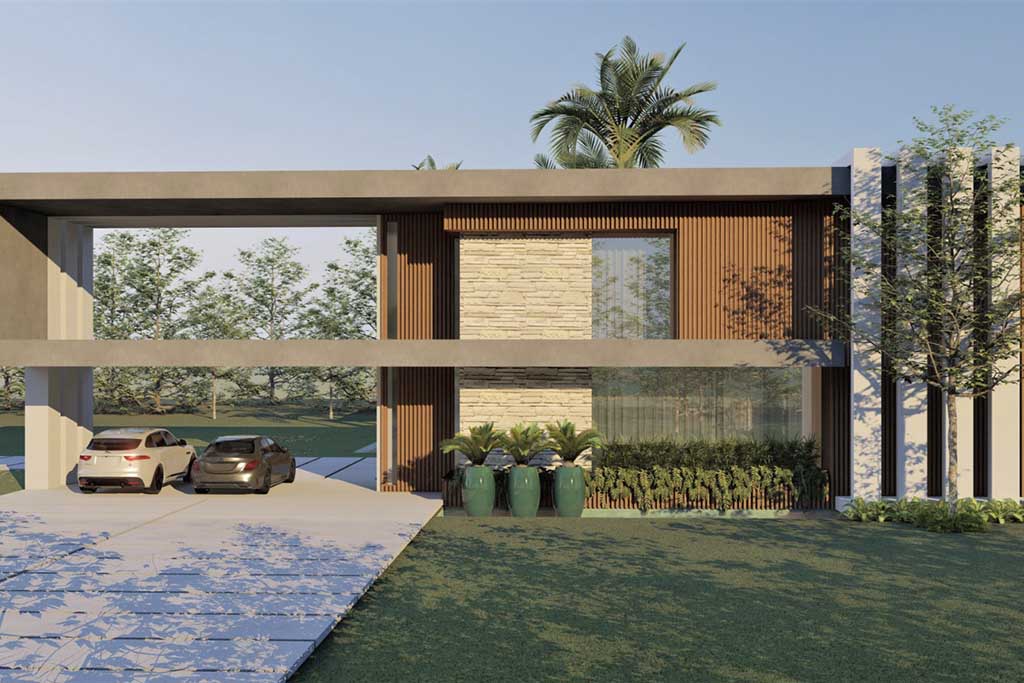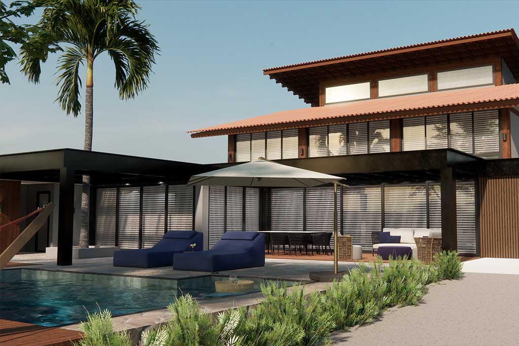 Em nossos projetos arquitetônicos residenciais buscamos a integração do interior com o exterior, preservando as vistas da paisagem e horizonte, trazendo a iluminação natural, o respeito à topografia, numa composição com uso de volumetrias, linhas retas e materiais puros como o uso da pedra e madeira.